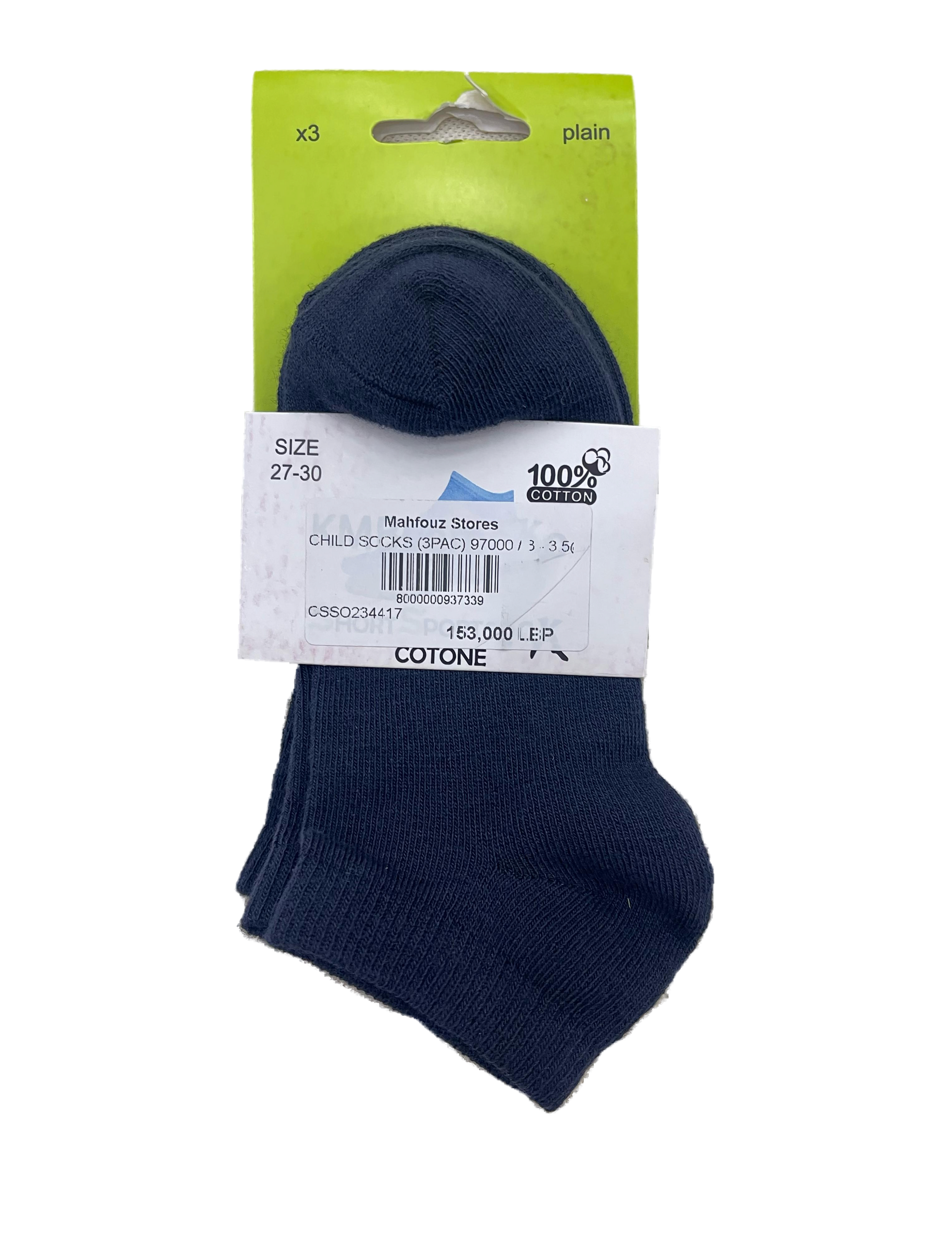 Kids - Ankle Premium-عالي الجودة Cotton Socks - Pack of 3 Pairs | عبوة تحتوي على 3 أزواج